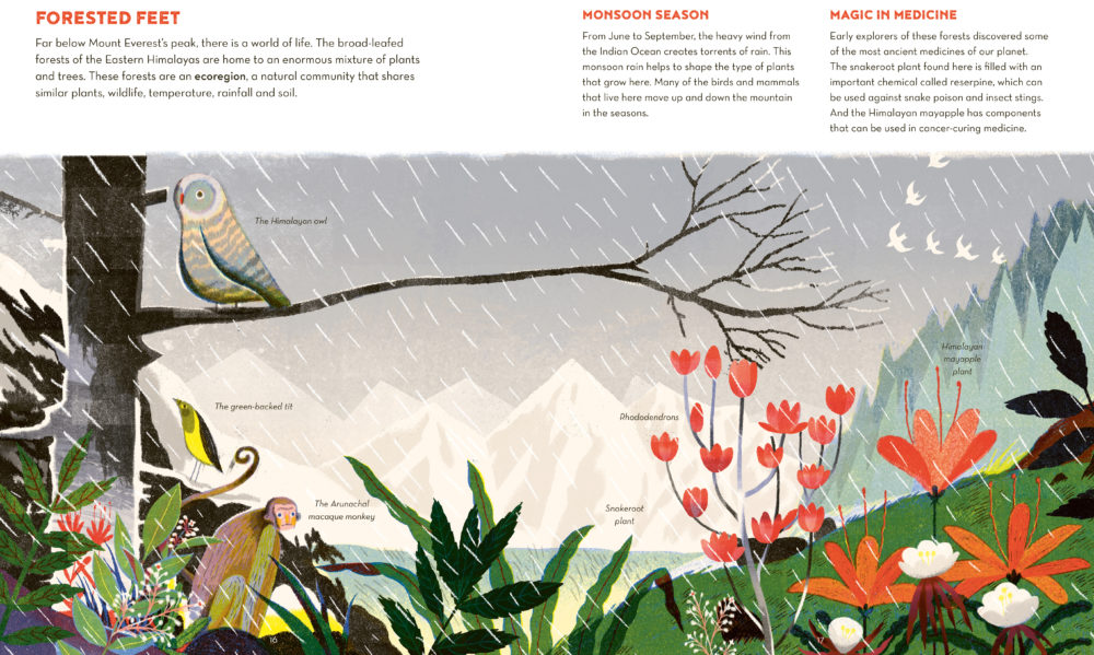 Mount Everest is undoubtedly one of the most famous mountains on Earth. Hundreds of people clamber to its summit every year, following in Edmund Hillary and Tenzing Norgay’s footsteps… but there is so much more to this mountain than the people who climb it. With sumptuous and stylish illustrations by Lisk Feng, this dynamic book reveals the great mountain’s ancient origins, the flora and fauna that thrive upon its great flanks, and the rich mythology of Sagarmatha, the Goddess of the Sky.