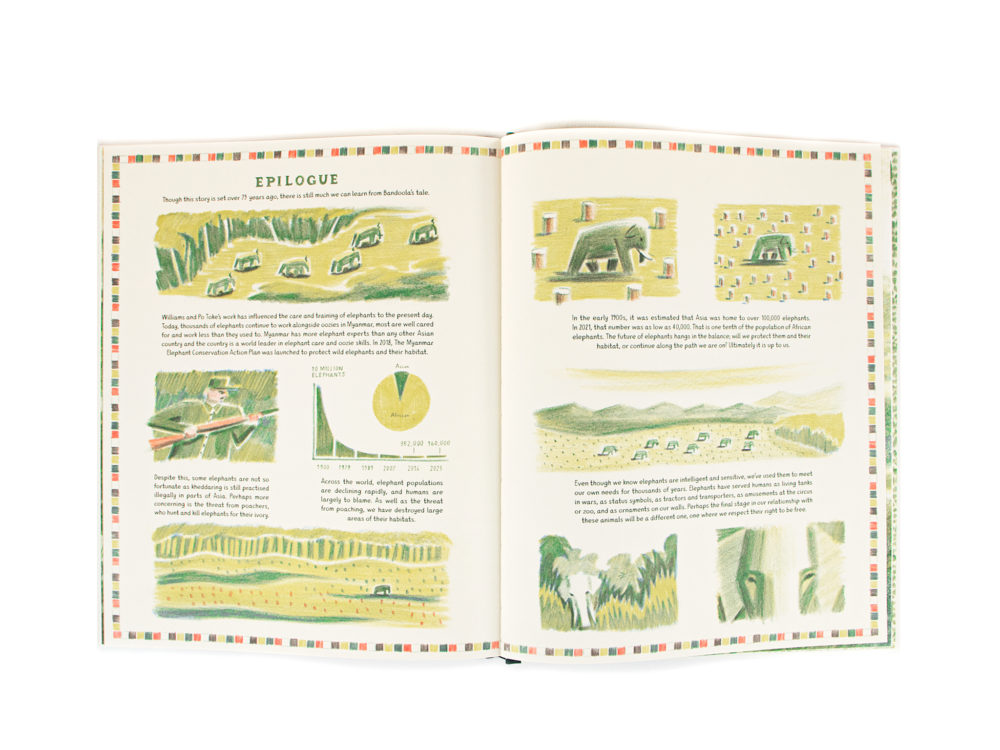 In this moving tale based on a true story, award-winning William Grill’s stunning illustrations show the majesty of Myanmar’s forests and mountains, the backdrop to a heart-warming tale about empathy between humans and animals, and the strength that can arise from working together when the world is full of danger.