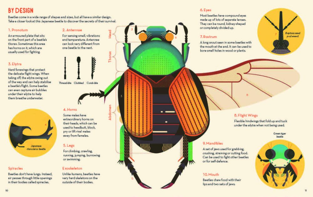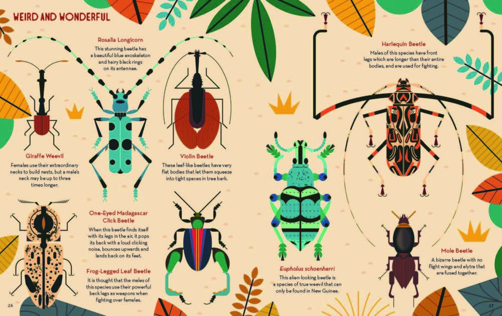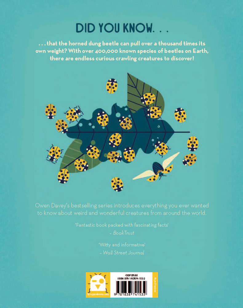 Owen Davey’s dynamic art and witty informational tidbits shine a light on the toughest bugs in the insect world: those brawny beetles!