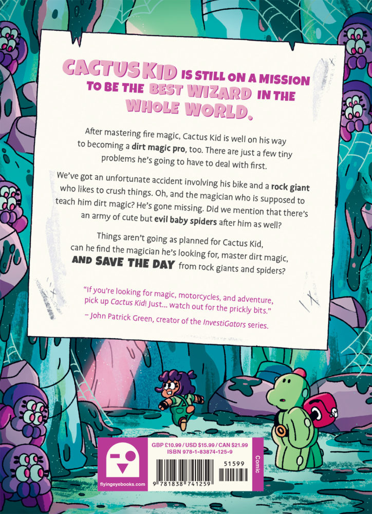 After mastering fire magic, Cactus Kid is well on his way to becoming a dirt magic pro, too. There are just a few tiny problems he’s going to have to deal with first. We’ve got an unfortunate accident involving his bike and a rock giant who likes to crush things. Oh, and the magician who is supposed to teach him dirt magic? He’s gone missing. Did we mention that there’s an army of cute but evil baby spiders after him as well? Things aren’t going as planned for Cactus Kid, can he find the magician he’s looking for, master dirt magic, and save the day from rock giants and spiders?
