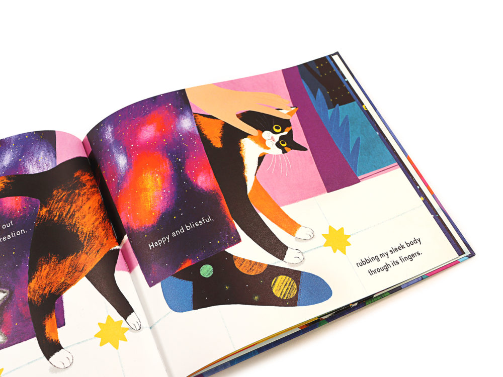 Open your eyes to beauty and wonder in galaxy-sized proportions with this magical, mystical picture book. Written in rhythmic prose with lively and bright illustrations, this calming and beautiful combination of the comfort of cats and the magic of space is the perfect bedtime read.