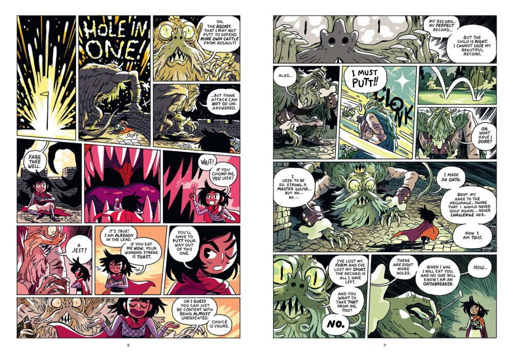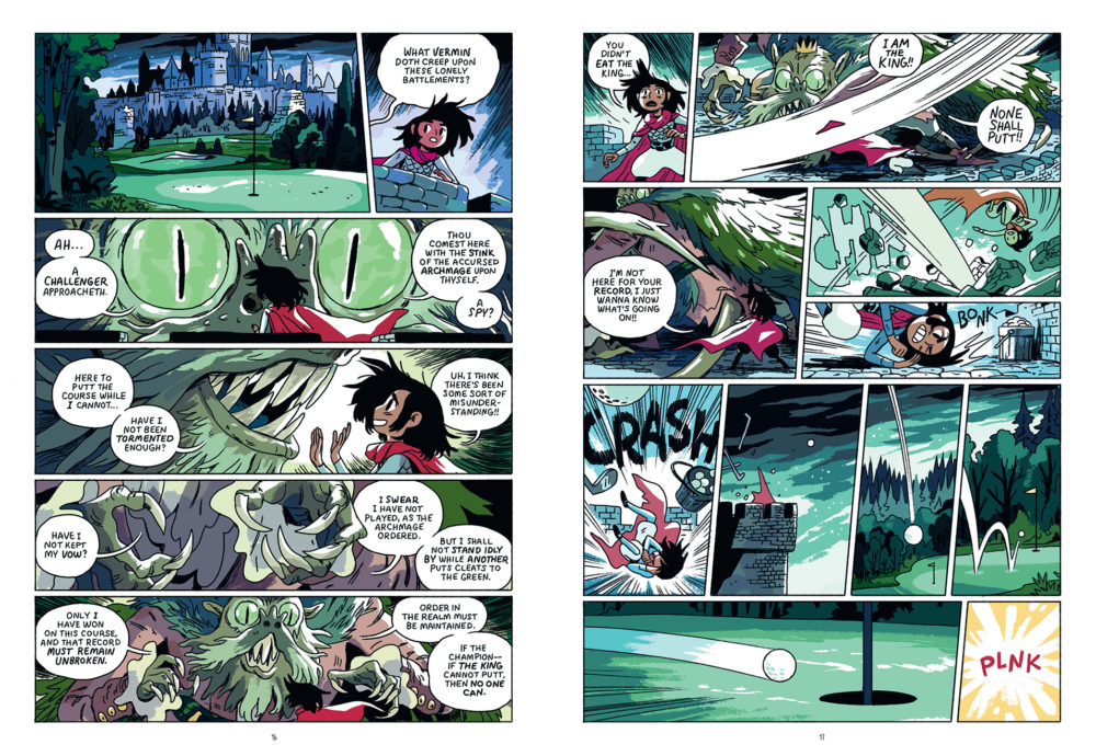 Wiz and Mug become separated after washing up on the shores of a gothic castle town, where a monstrous beast has taken over King’s lands and left the people to starve. Wiz breaks into the beast’s castle and finds herself thrown into a game of supernatural mini golf. Can she win the game and escape with her life? Meanwhile, Mug uncovers the sinister truth behind the Order of Mages…