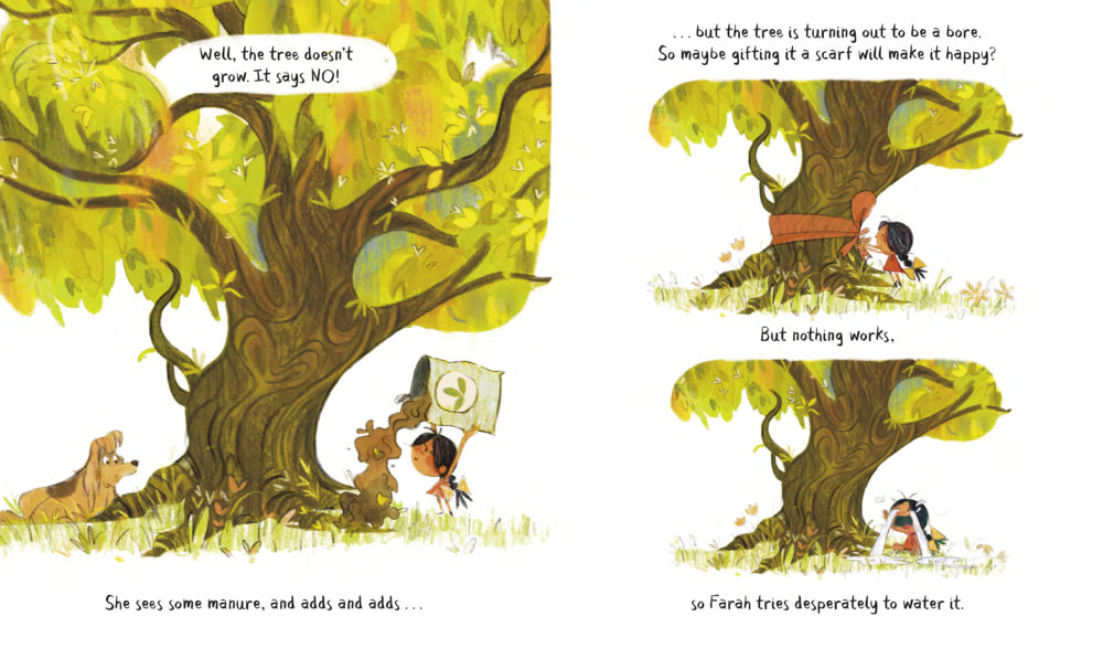 Farah loves mangos! She could eat them all day long and she wouldn’t mind living in one either. Every summer when she visits her Grandpa they always pick the ripe fruit from his mango tree. This year, however, the tree is empty! Farah puts her mind to it and decides she will make the tree grow fruit. But perhaps Farah will learn there is more to a mango tree than just the fruit it bears?