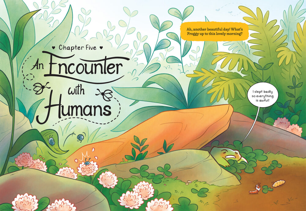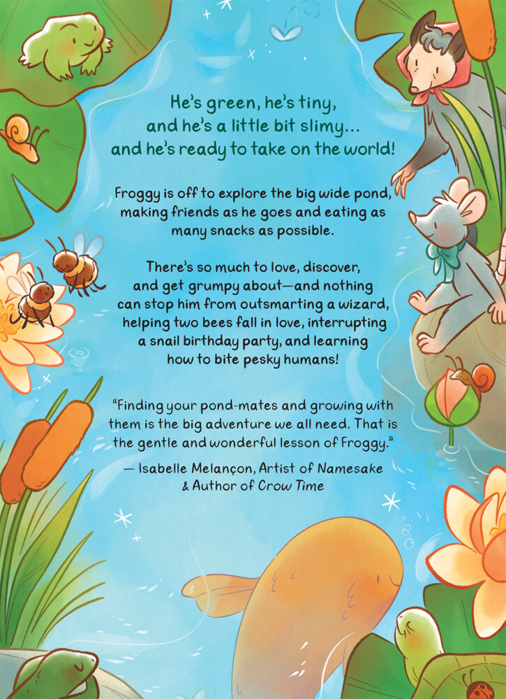 He’s a little bit of a klutz, and making friends with local wizards, falling foul of picnicking humans, and befriending giant fish are all in a day’s work for this slimy guy. Learning how to deal with big feelings, big magic spells, and big fish in the big world can be a lot for a little frog, but he’s not giving up any time soon.