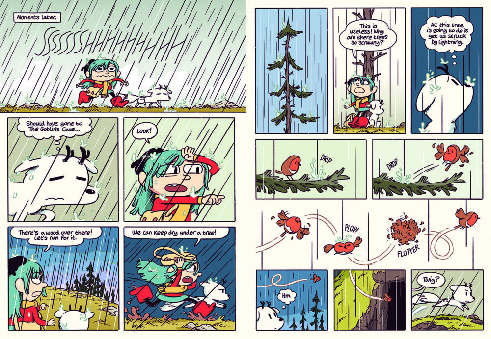 Hilda and Twig would never let a bit of rain get in the way of an adventure, but it’s different when your forest exploration is interrupted by a BIG storm.