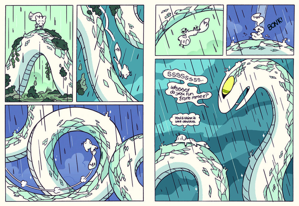Sheltering in a mysterious mound in the earth, Twig quickly realises that trouble is afoot, and that his best blue-haired friend is in danger. Unfortunately, he’s never really thought of himself as the brave one, but it looks like he’s going to have to step up and save Hilda from a whole load of big, scaly trouble! Dive into this magical comic as we follow our lovable pair on a soggy adventure.