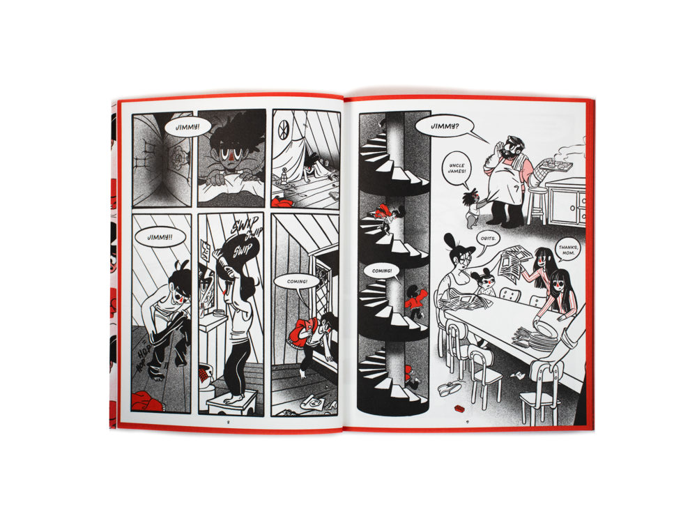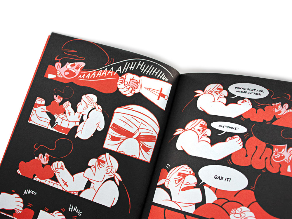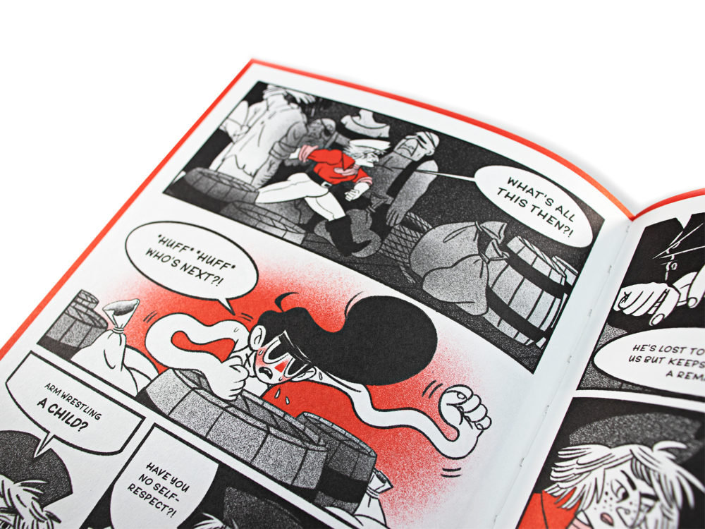 Jimmy dreams of one day being recognised as JIMMY RUCKUS, world famous featherweight, beloved by all but in his eleven-strong house, Jimmy is the last thing on anyone’s minds. He knows he’s destined for greatness, so he sets off to seek his fortune. What he finds are circus animals, painters, pirates and heavyweight champs, each one challenging Jimmy’s idea of success. Eventually, he realises he has to decide whether living life fist first is all it’s cracked up to be. Lara Kaminoff’s stellar art style and sharp characters give us a snappy, fresh graphic novel about a scrappy kid who means well, but never quite gets it right.