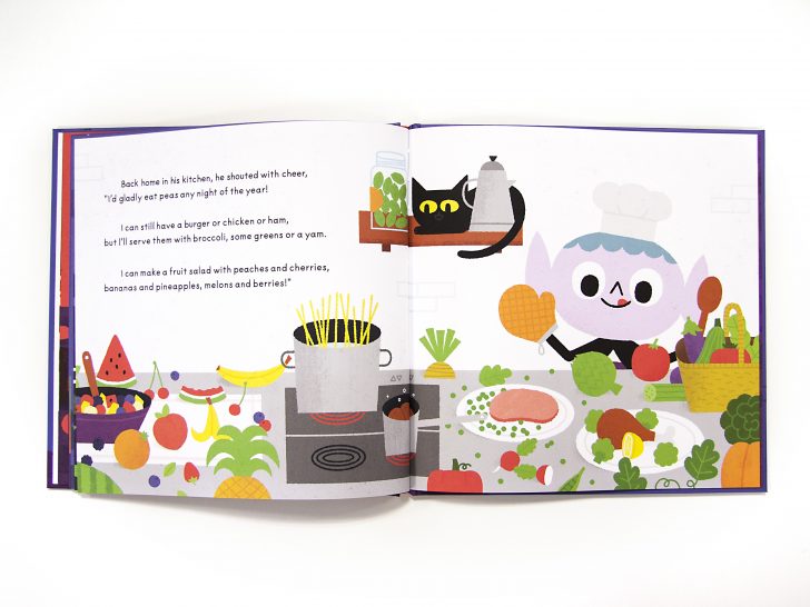 After trying fruits and vegetables for the first time, Hugo discovers the joys of a more balanced diet. The story is told in rhymed verse accompanied by simple, charming, graphic illustrations.