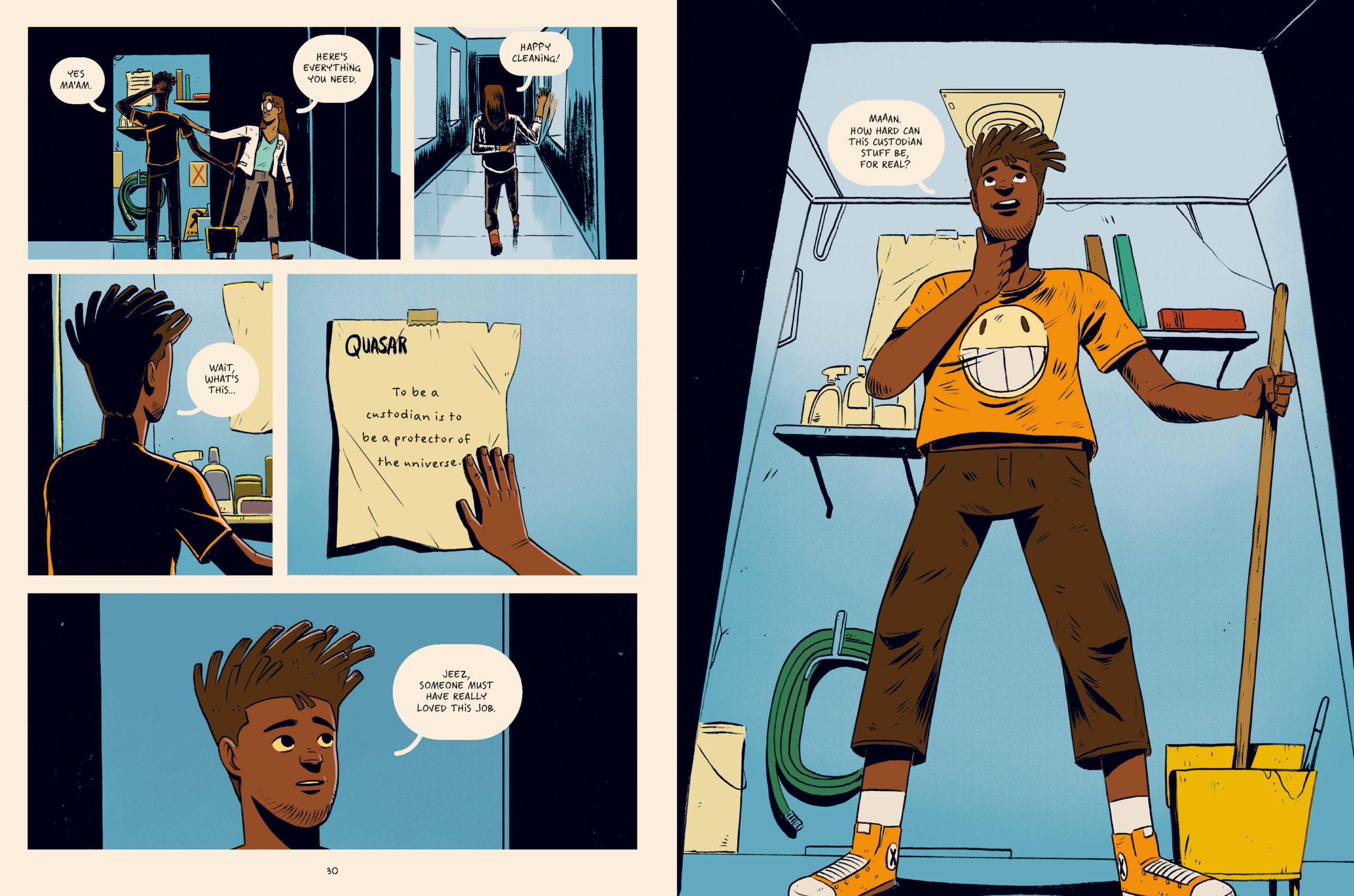 Starting a new dead-end job as a custodian at Quasar—a local science facility with a shady motive—he shrugs on his uniform, grabs a mop and bucket, and trudges off to clean up… Black holes? Space-time anomalies? Galactic ooze?