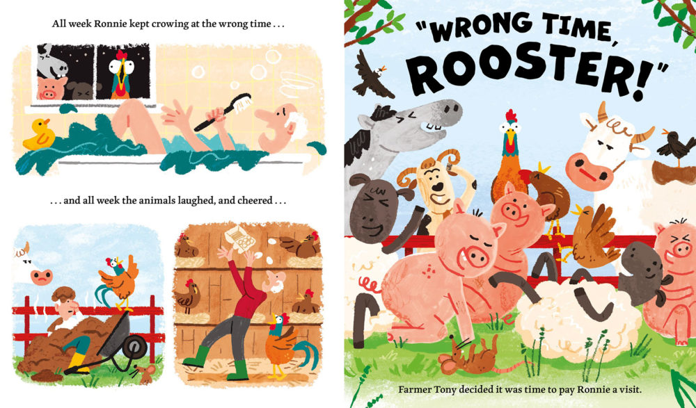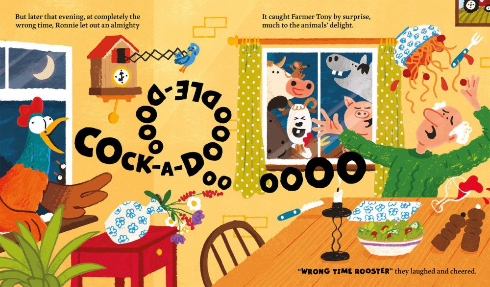 Ronnie the rooster arrives at Farmer Tony’s farm to help wake up the animals, but something isn’t right– Ronnie just cannot tell the time! The animals band together to help teach Ronnie and soon his COCK-A-DOODLE-DOOs are perfectly on time… mostly!
