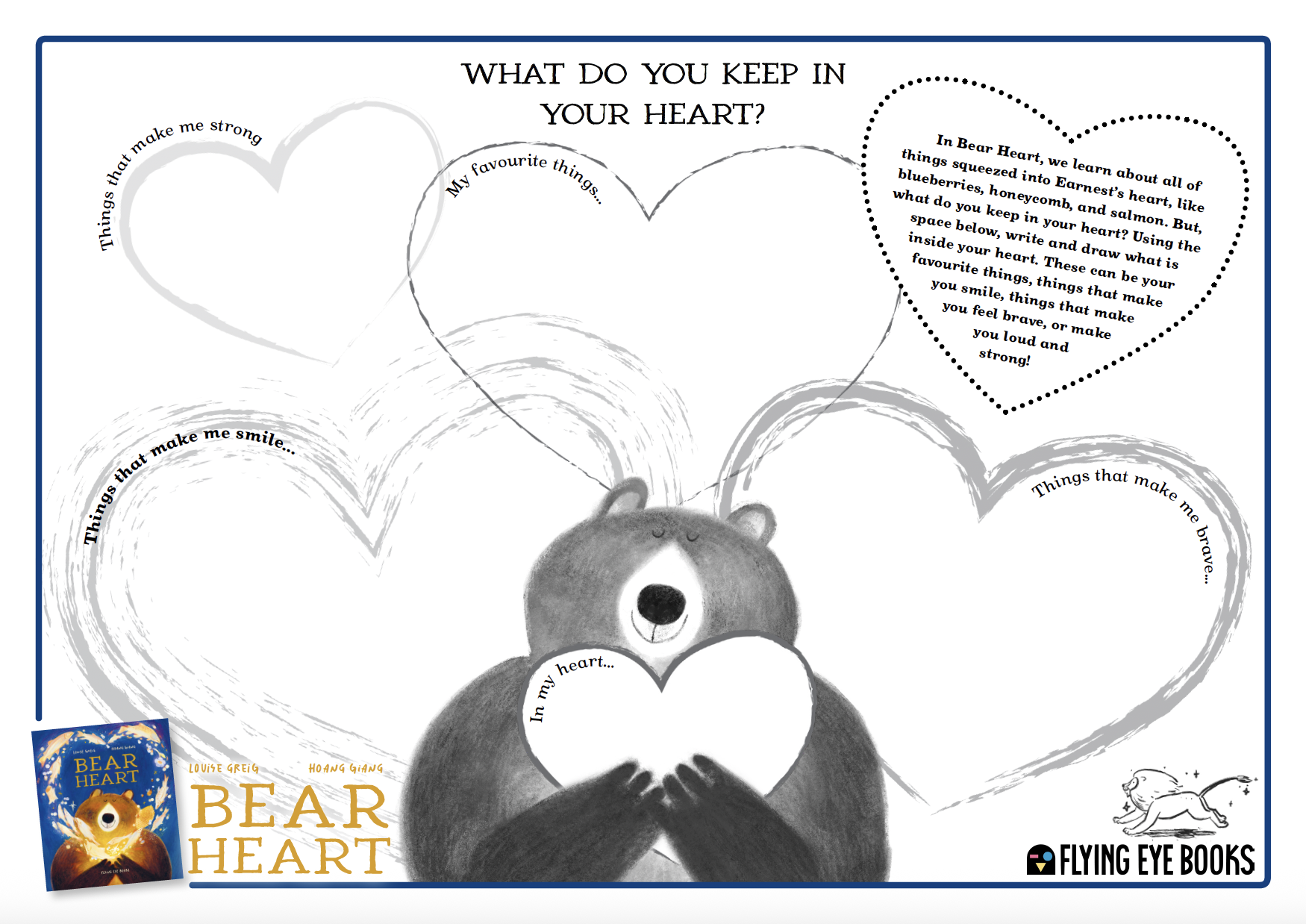 Inspired by our new picture book, Bear Heart by Louise Greig and Hoang Giang, it is time to get creative and show all the things you keep in your heart in this FREE activity sheet!
