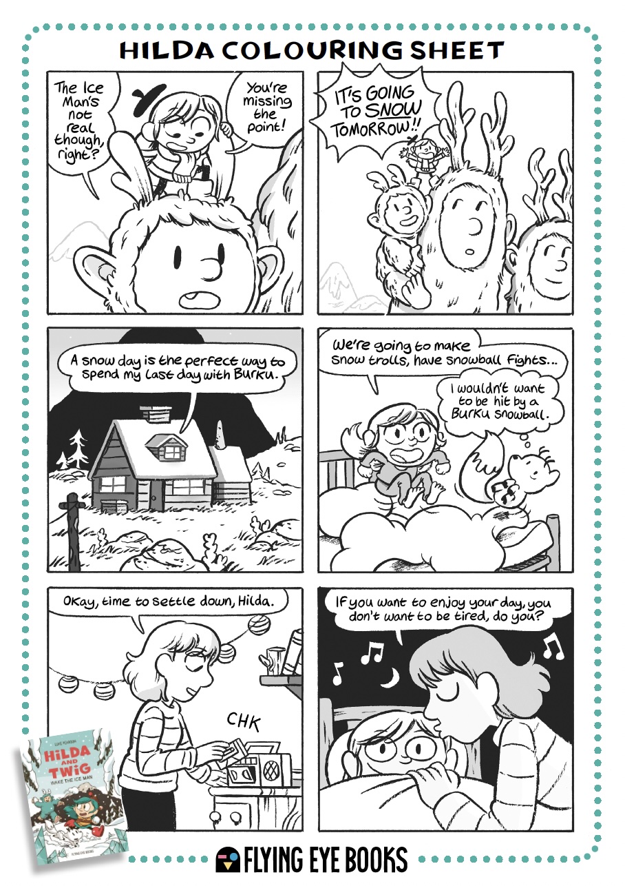 To celebrate the publication of Hilda and Twig: Wake the Ice Man by Luke Pearson, we have this FREE activity colouring sheet so you can get creative and join the fun with our favourite blue-haired heroine and our beloved deer-fox friend.