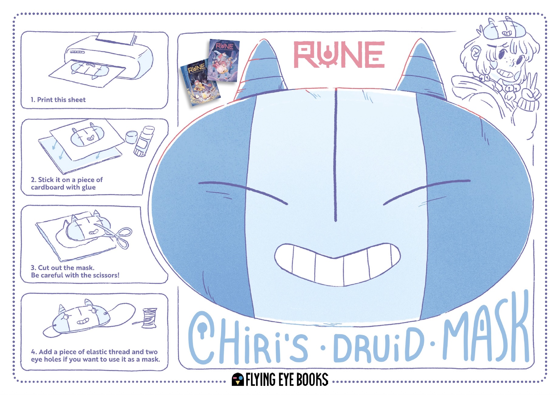 Chiri is! And to celebrate both Halloween and the publication of Rune: The Tale of the Obsidian Maze, Carlos Sánchez has put together a FREE activity sheet so you can get your costume ready and get crafting your own Chiri Druid Mask!