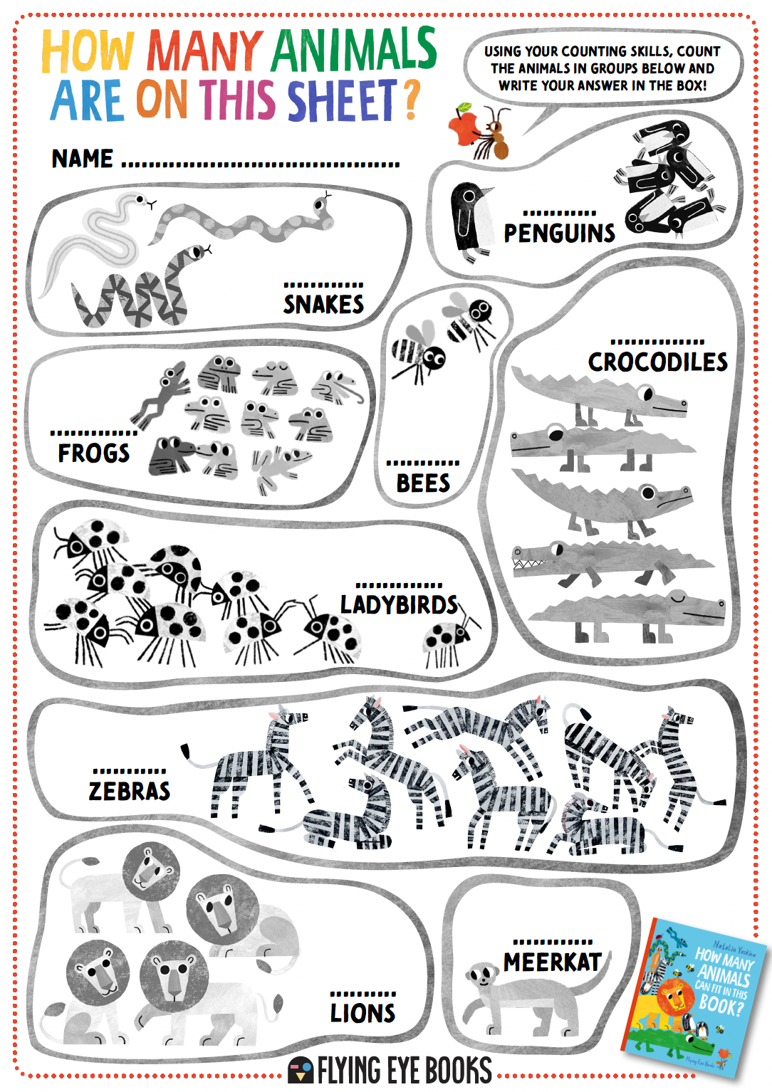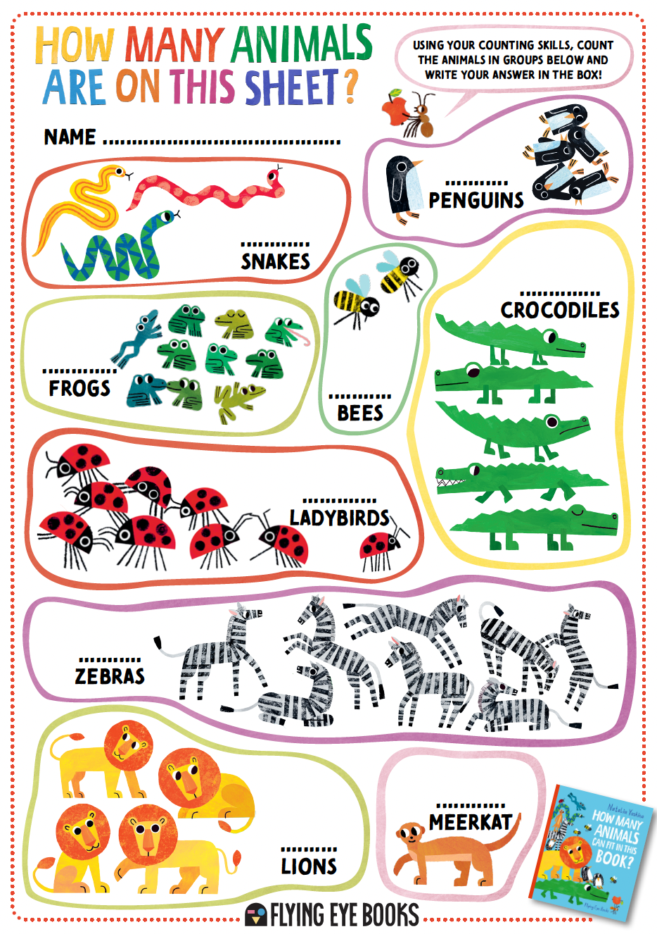 To celebrate the publication of How Many Animals Can Fit in This Book?, we’ve put together TWO TOTALLY FREE Activity Sheets for you to get creative and test your counting skills…