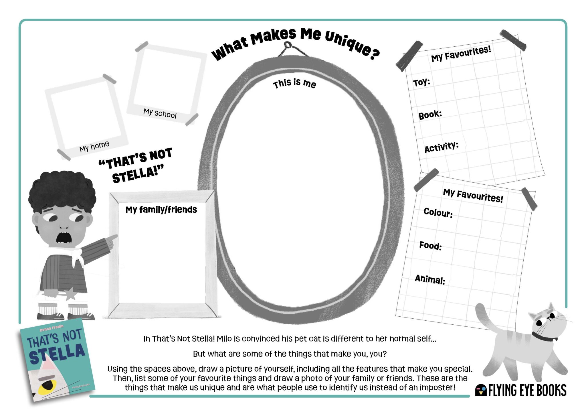 Inspired by our new picture book, That’s Not Stella! by Donna Fredin, show all the things that make you unique and recognisable in this fun and FREE activity sheet!
