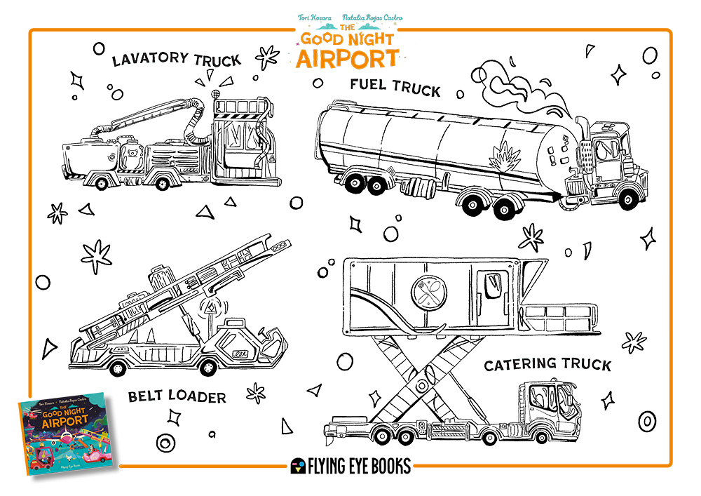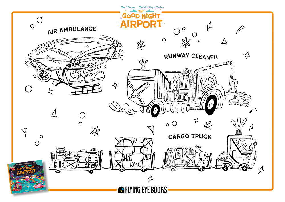 We’ve designed a pair of fantastic print-your-own colouring sheets for little vehicle lovers, inspired by our new picture book, The Good Night Airport by Tori Kosara and Natalia Rojas Castro.