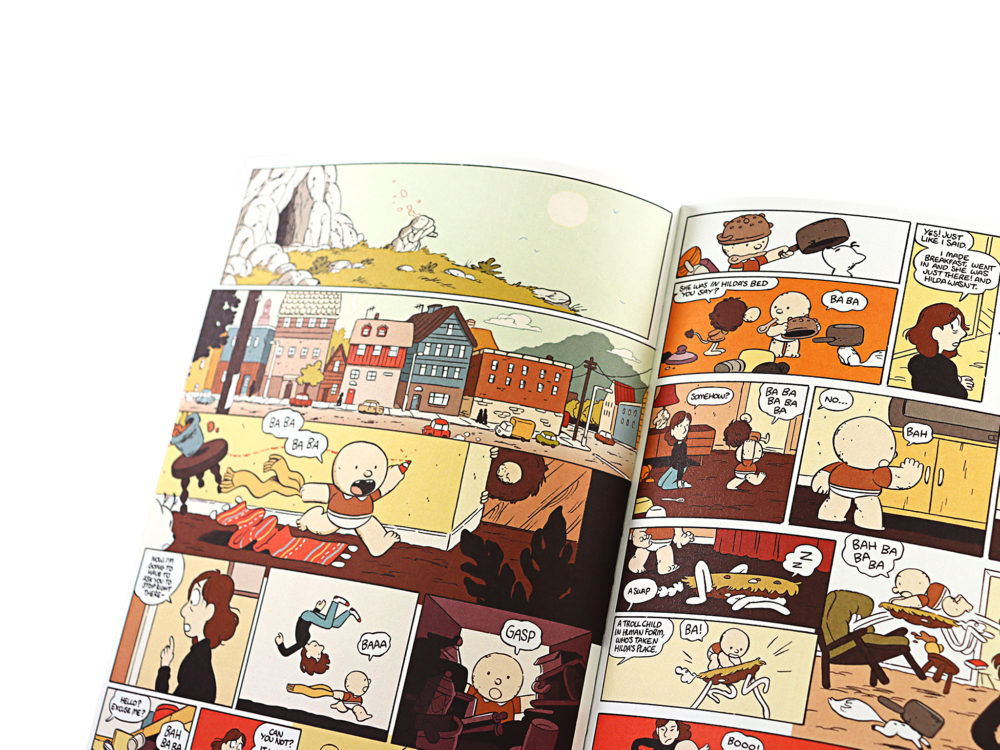 For the first time in paperback, we rejoin our heroine for her latest adventure just as she awakes to find herself…in the body of a troll! Her mum is worried sick, and now has to deal with the strange creature that seems to have taken Hilda’s place. Now, both of them are in a race to be reunited before Ahlberg and his safety patrol get the chance to use their new secret weapon to lay waste to trolls, and Hilda along with them!